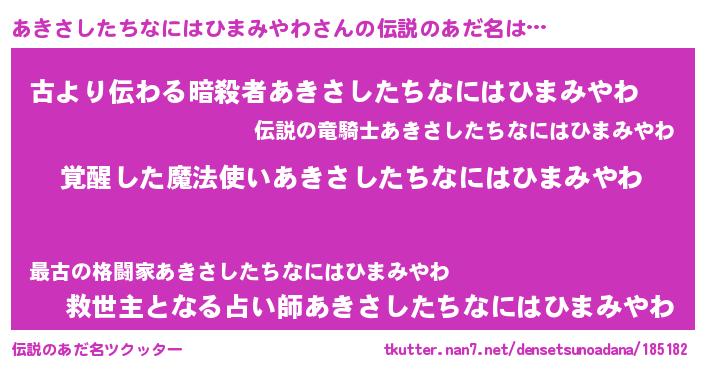| 胡散臭い通販商品みたいなあだ名 | 『全米が絶賛したサプリメント…その名も「あきさしたちなにはひまみやわ」』 |