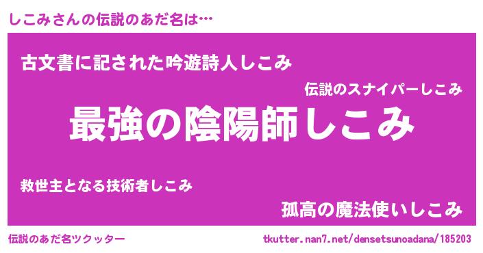 | ヒーロー風カッコイイあだ名 | 『ウルトラしこみマン』『ネオシコミ』 |