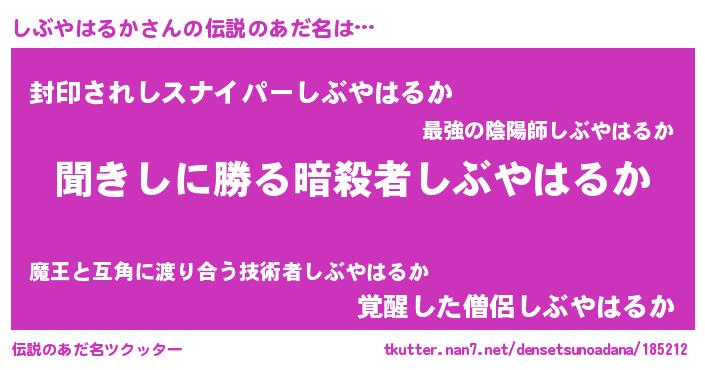 | 男性向けラノベタイトル風あだ名 | 『しぶやはるかという概念が存在しない退屈な世界 』 |