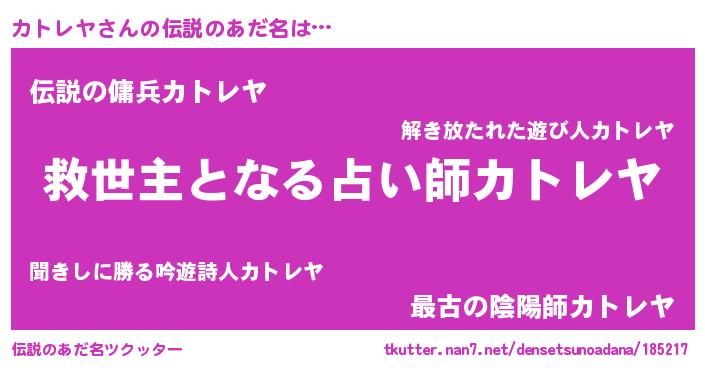 | ヒーロー風カッコイイあだ名 | 『天空の使者カトレヤ』『仮面カトダー』 |