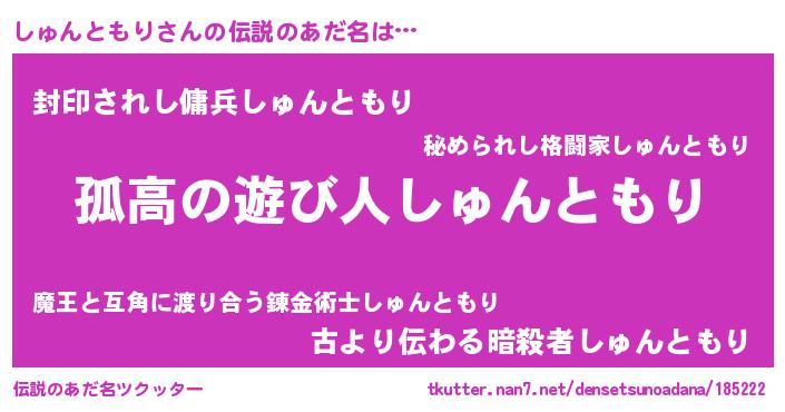 | 意味不明あだ名 | 『自称しゅんともり』 |
