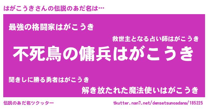 | ヒーロー風カッコイイあだ名 | 『スーパーハガコウキ』『天弓騎士ハガ』 |