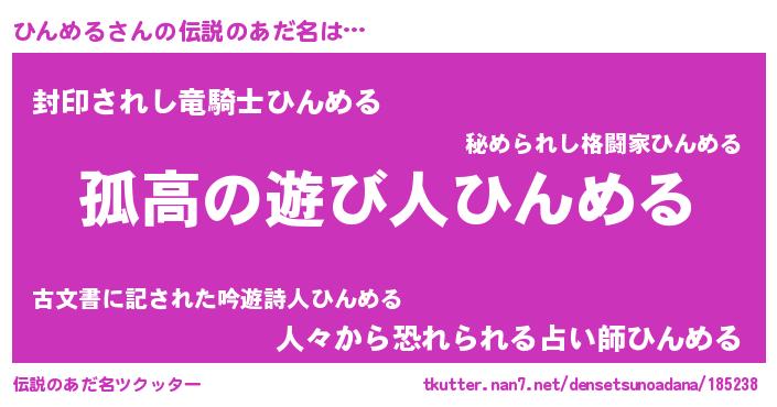 | 男性向けラノベタイトル風あだ名 | 『魔法科高校のひんめる』 |