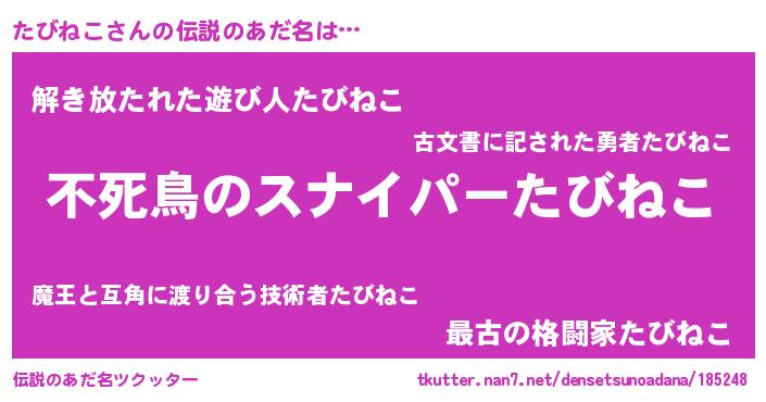 | ヒーロー風カッコイイあだ名 | 『スーパータビネコ』『仮面タビダー』 |