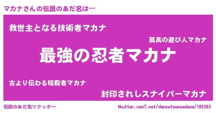 | ヒーロー風カッコイイあだ名 | 『ウルトラマカナマン』『最強戦士マカナ』 |