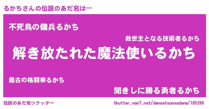 | 男性向けラノベタイトル風あだ名 | 『この素晴らしい世界にるかちを!』 |