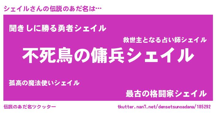 | 胡散臭い通販商品みたいなあだ名 | 『モテモテ間違いなし水晶球…その名も「シェイル」』 |