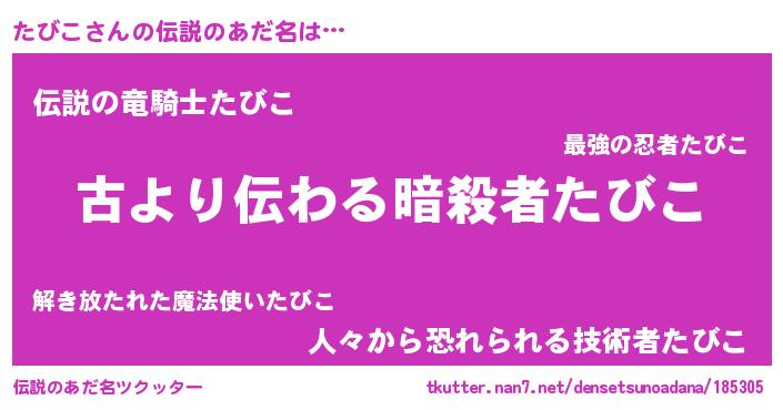 | 女子向けラノベタイトル風あだ名 | 『乙女ゲームの破滅フラグしかない悪役たびこに転生してしまった…』 |