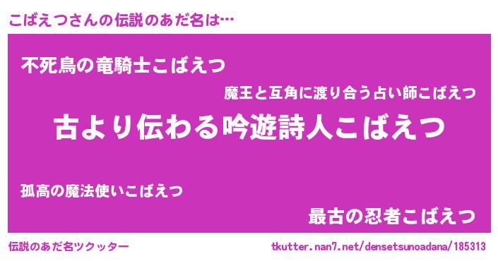 | ヒーロー風カッコイイあだ名 | 『ネオコバエツ』『スーパーコバエツ』 |