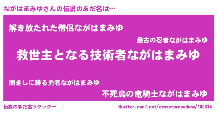| ヒーロー風カッコイイあだ名 | 『慈愛の使者ながはまみゆ』 |