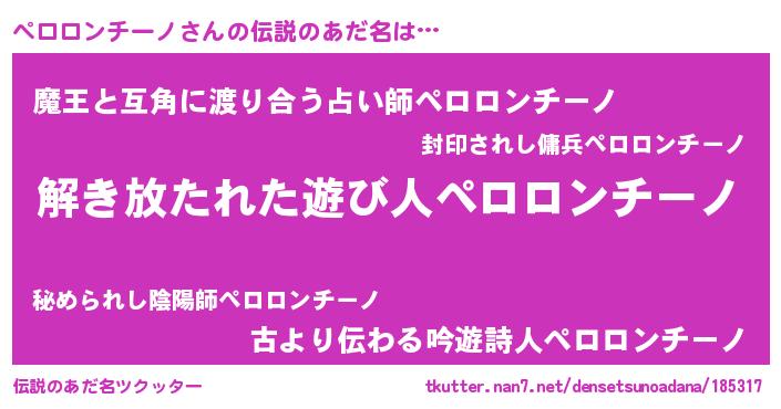 | ヒーロー風カッコイイあだ名 | 『魔戒騎士ペロ』『ネオペロロンチーノ』 |