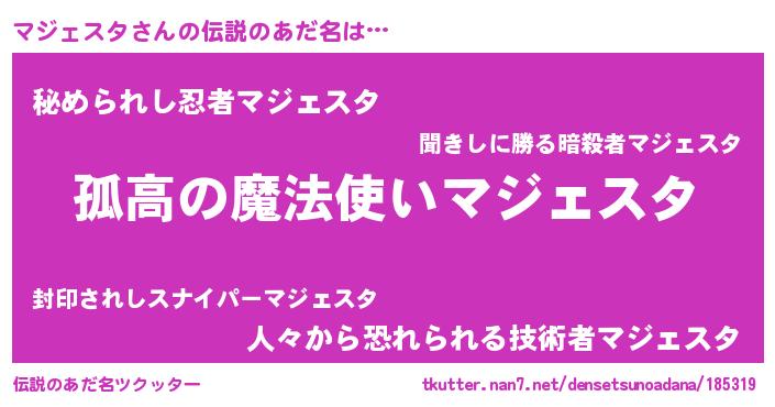 | 胡散臭い通販商品みたいなあだ名 | 『信頼と実績のサプリメント…その名も「マジェスタ」』 |