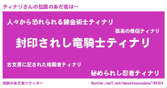 | 男性向けラノベタイトル風あだ名 | 『この素晴らしい世界にティナリを!』 |