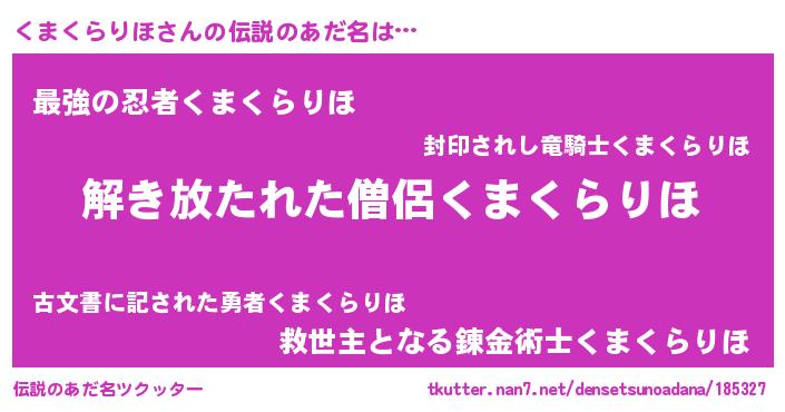 | 意味不明あだ名 | 『とにかく怪しいくまくらりほ』 |