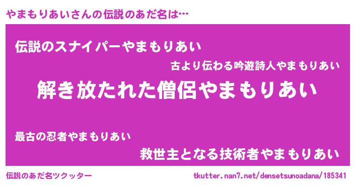 | 意味不明あだ名 | 『とにかく怪しいやまもりあい』 |
