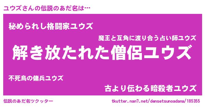 | ファンタジー風あだ名 | 『ファントムユウス』『ユウディッシュ』 |