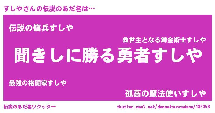 | ヒーロー風カッコイイあだ名 | 『ネオスシヤ』『スーパースシヤ』 |