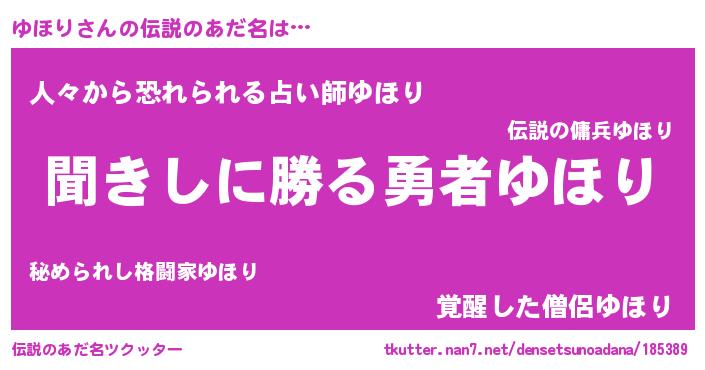| ヒーロー風カッコイイあだ名 | 『ネオユホリ』『正義の使者ゆほり』 |