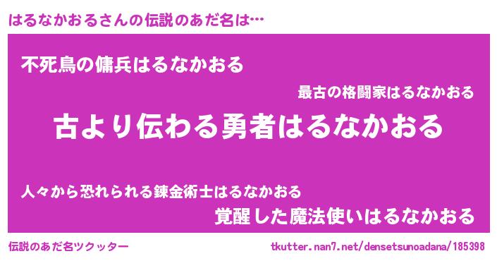 | 意味不明あだ名 | 『永久保存はるなかおる』 |