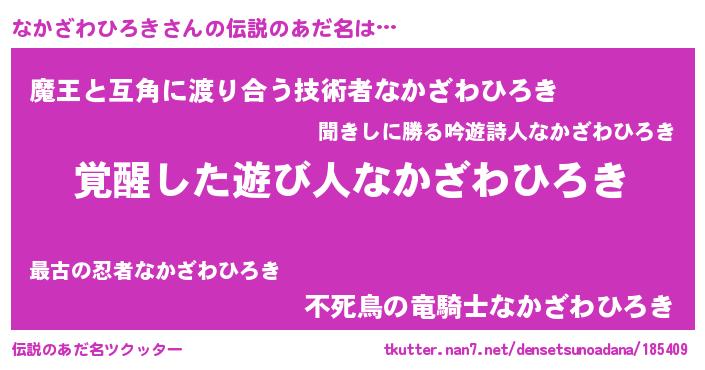 | ヒーロー風カッコイイあだ名 | 『炎刃騎士ナカ』『ネオナカザワヒロキ』 |
