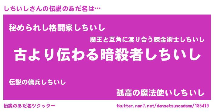| 意味不明あだ名 | 『永久保存しちいし』『自称しちいし』 |