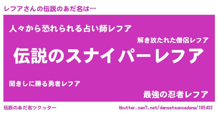 | 意味不明あだ名 | 『自称レフア』『ペロリンレフア』 |