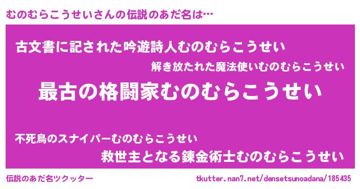 | 意味不明あだ名 | 『むのむらこうせいフォーエバー』 |