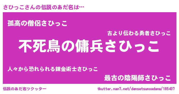 | ヒーロー風カッコイイあだ名 | 『ウルトラ戦士サヒッコ』『幻影騎士サヒ』 |