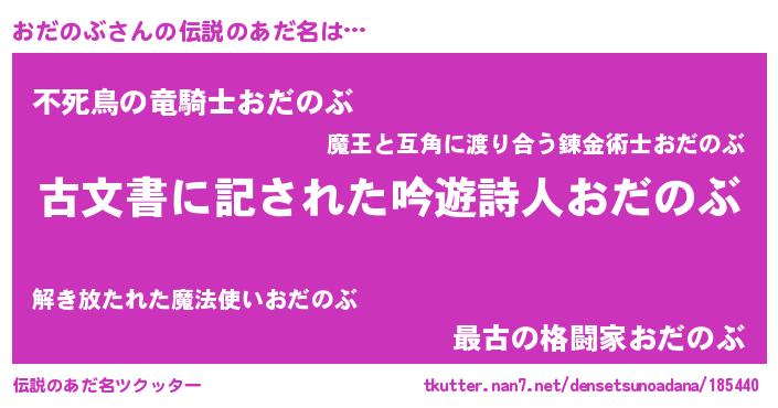| 意味不明あだ名 | 『自称おだのぶ』『永久保存おだのぶ』 |