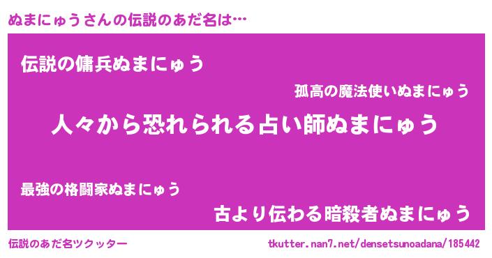 | 料理風あだ名 | 『ぬまにゅうごはん』 |