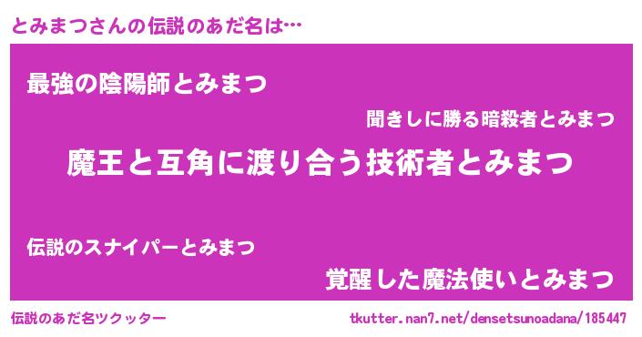 | 男性向けラノベタイトル風あだ名 | 『おまえをオタクにしてやるから、俺をとみまつにしてくれ! 』 |