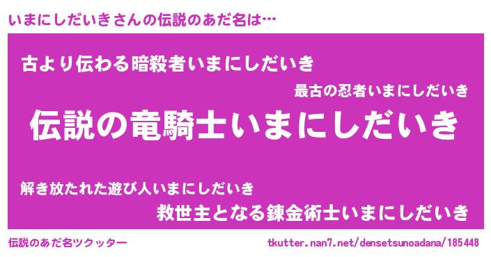 | 意味不明あだ名 | 『住所不定無職いまにしだいき(2歳)』 |