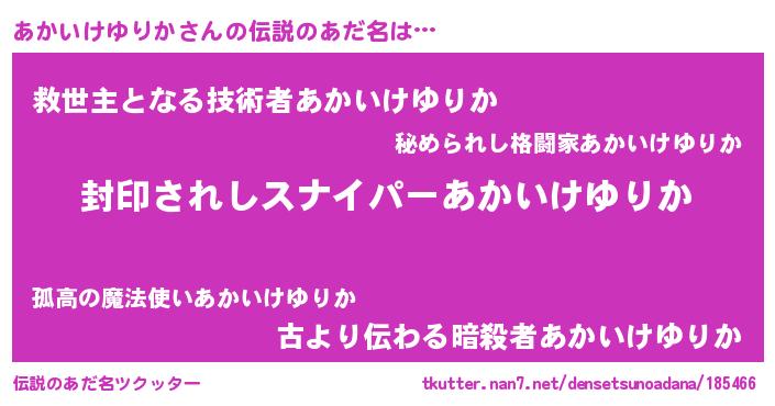 | ヒーロー風カッコイイあだ名 | 『最強戦士アカイケユリカ』 |