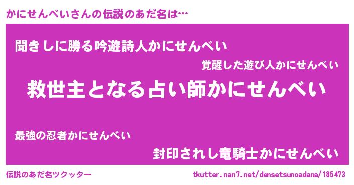 | ヒーロー風カッコイイあだ名 | 『慈愛の使者かにせんべい』 |