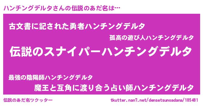 | ヘコむあだ名 | 『ハンもー』『ハンチングデルタ(遠い目)』 |