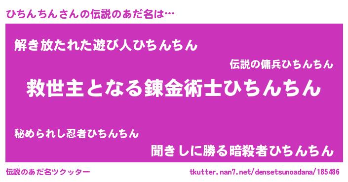 | ヒーロー風カッコイイあだ名 | 『天空の使者ひちんちん』『魔戒騎士ヒチ』 |