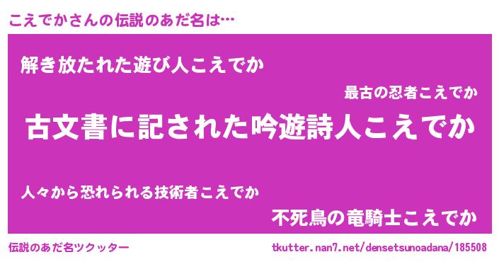 | ヒーロー風カッコイイあだ名 | 『ネオコエデカ』『幻影騎士コエ』 |