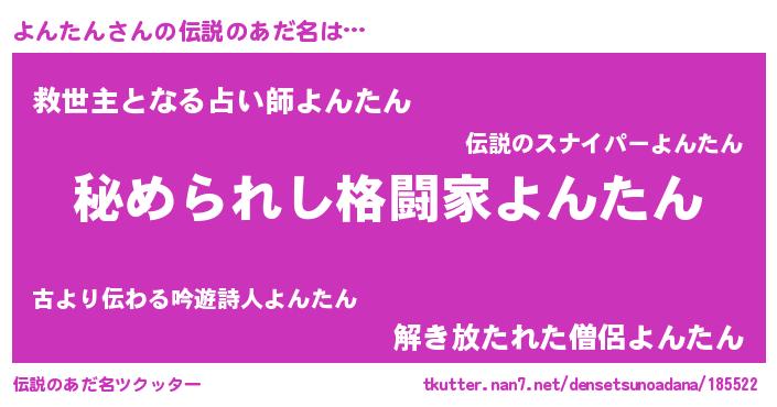 | 意味不明あだ名 | 『よんたんフォーエバー』『自称よんたん』 |