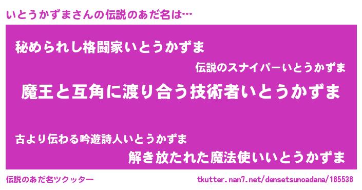 | 男性向けラノベタイトル風あだ名 | 『ノーゲーム・ノーイトウカズマ』 |