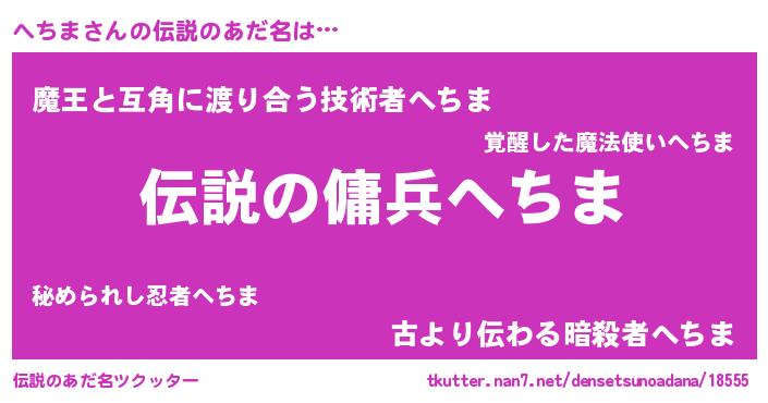 | ヒーロー風カッコイイあだ名 | 『仮面ヘチダー』『スーパーヘチマ』 |