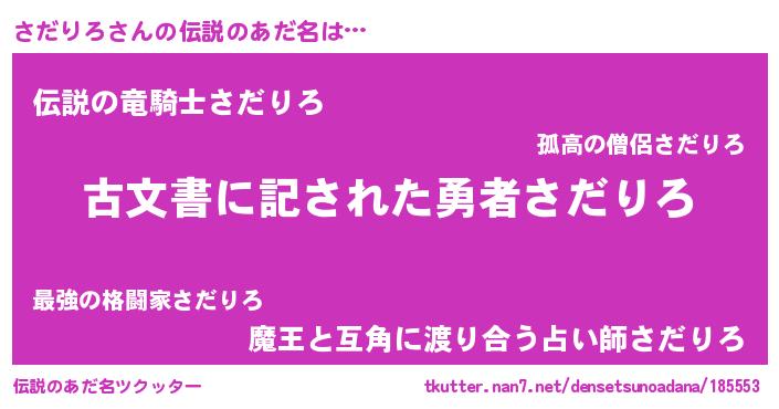 | 男性向けラノベタイトル風あだ名 | 『この素晴らしい世界にさだりろを!』 |