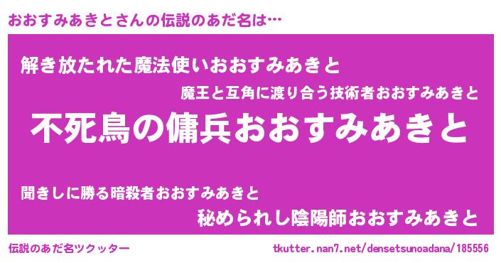 | 男性向けラノベタイトル風あだ名 | 『おおすみあきとの憂鬱』 |