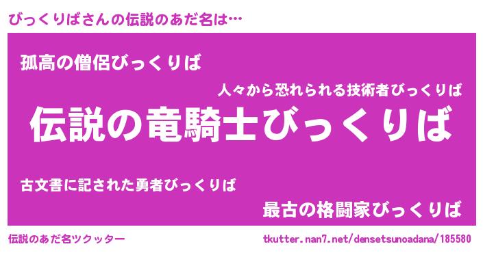 | ヒーロー風カッコイイあだ名 | 『スーパービックリバ』『魔戒騎士ビッ』 |