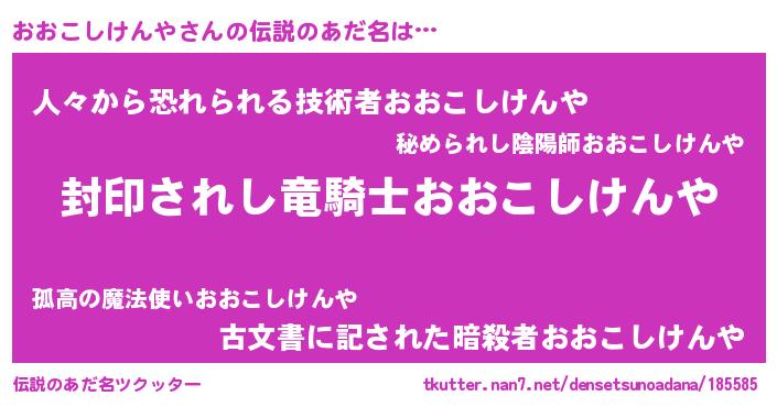 | 男性向けラノベタイトル風あだ名 | 『この素晴らしい世界におおこしけんやを!』 |