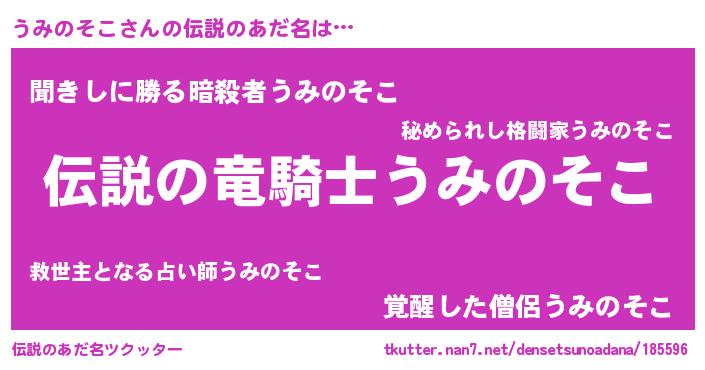 | ヒーロー風カッコイイあだ名 | 『スーパーウミノソコ』『ネオウミノソコ』 |