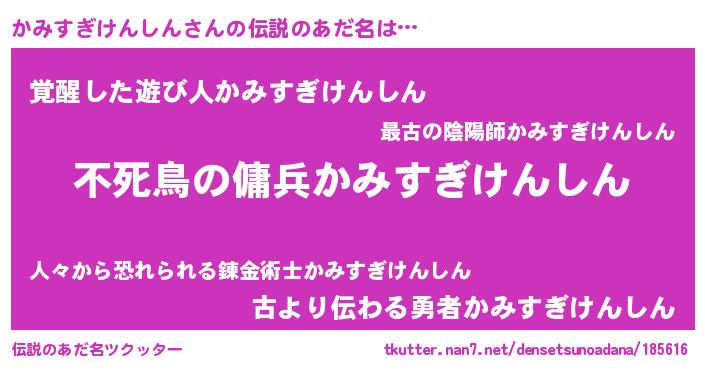 | 男性向けラノベタイトル風あだ名 | 『かみすぎけんしんの憂鬱』 |