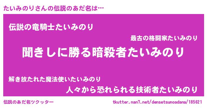 | 胡散臭い通販商品みたいなあだ名 | 『絶対に幸福をもたらす健康食品…その名も「たいみのり」』 |