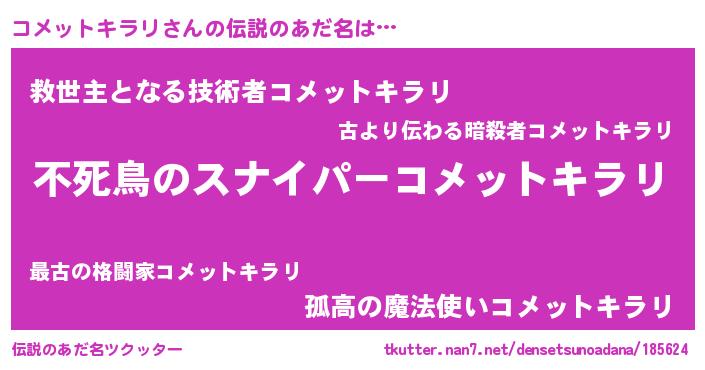 | 胡散臭い通販商品みたいなあだ名 | 『モテモテ間違いなし霊験あらたかなお札…その名も「コメットキラリ」』 |
