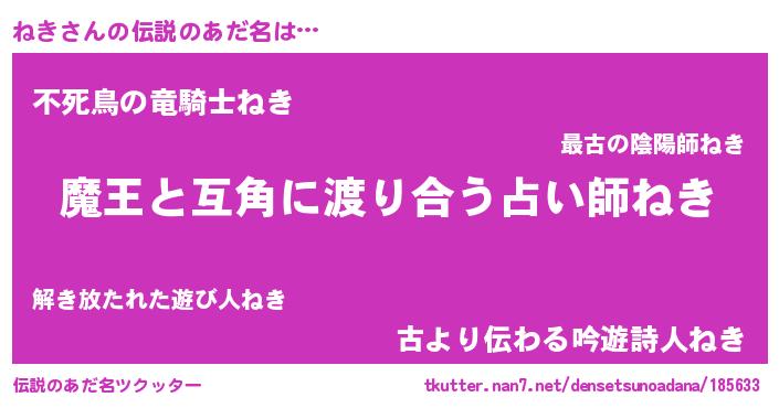 | 男性向けラノベタイトル風あだ名 | 『この素晴らしい世界にねきを!』 |