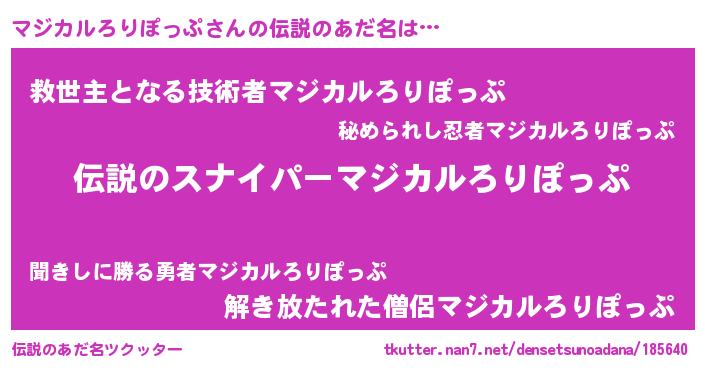| 男性向けラノベタイトル風あだ名 | 『マジカルろりぽっぷの憂鬱』 |